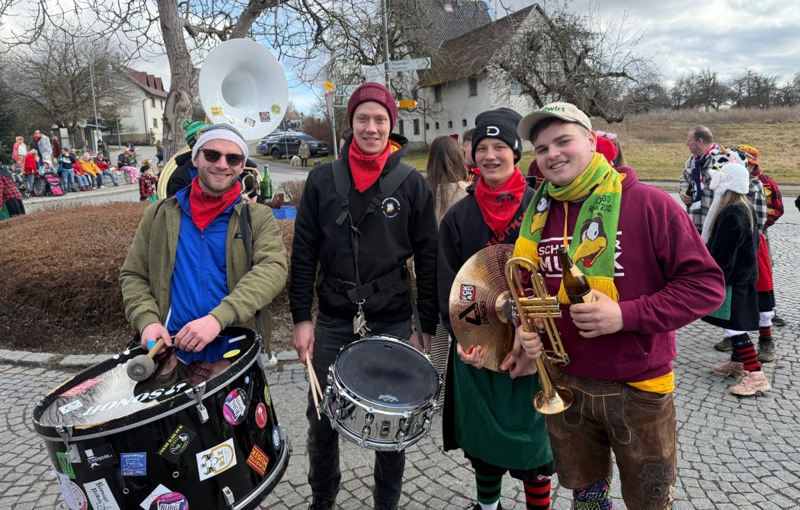 Am letzten Tag der Hauptfasnet durfte eine kleine Abordnung von Seeräubern den Zunftmeisterempfang im Probelokal musikalisch umrahmen. Beim anschließenden Fackelball zogen die Musiker als Startnummer eins durchs Dorf. Auch bei der Party in der Halle wurden die Gäste in Feierlaune versetzt.