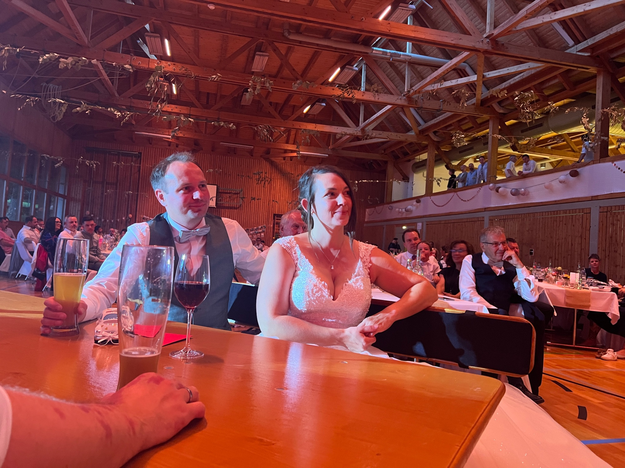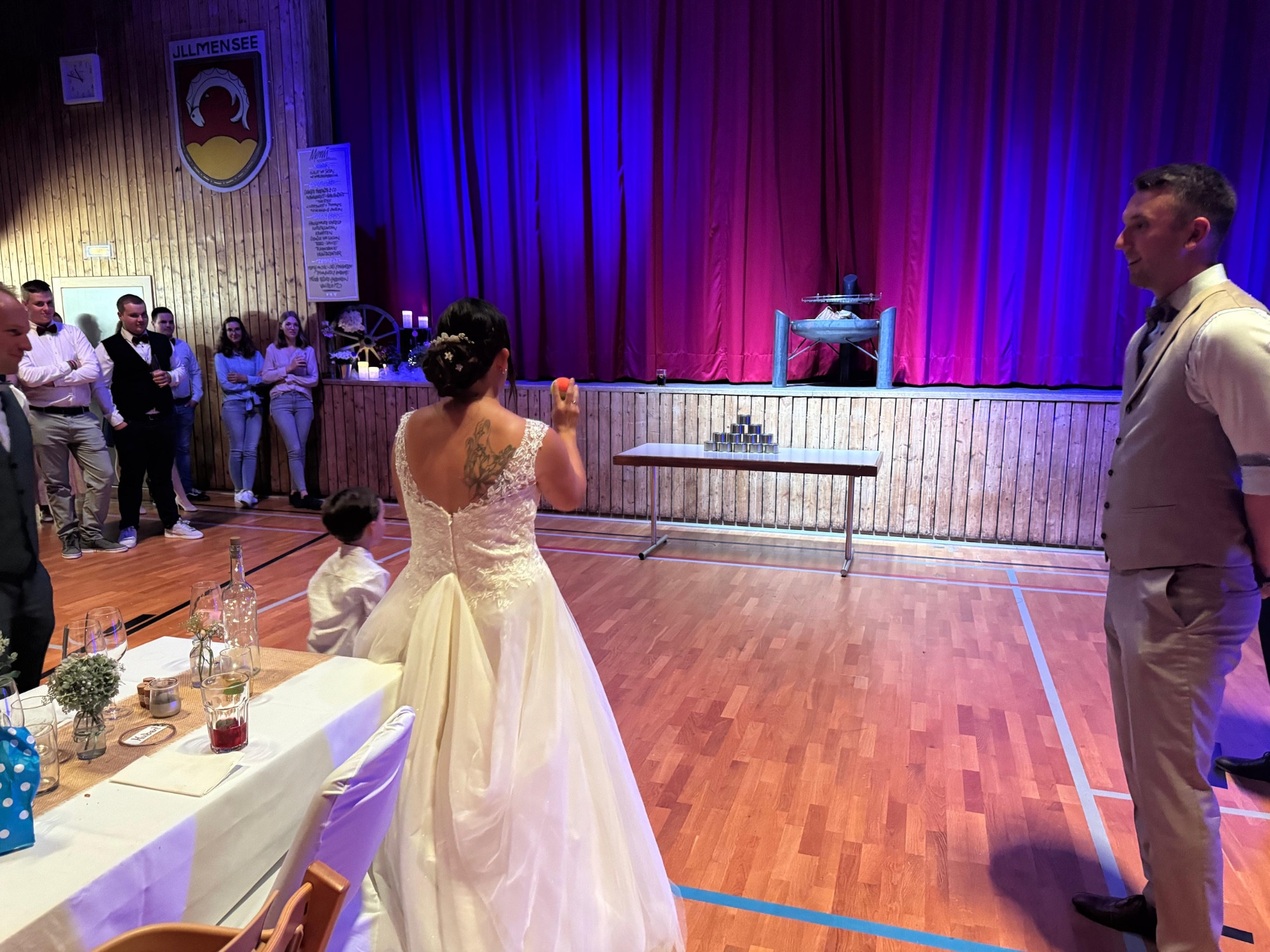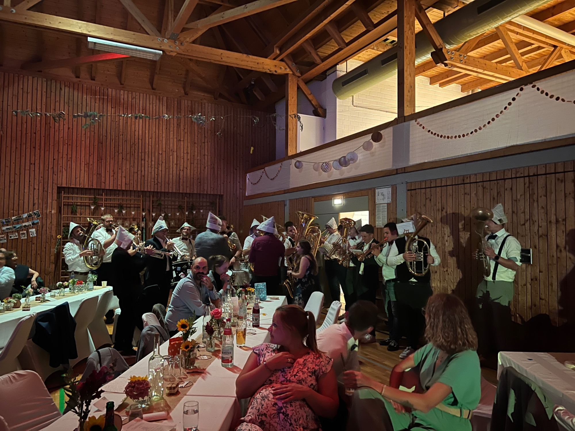Gegen 18:00 Uhr wurden dann die Musikuniformen gegen schicke Hochzeitsoutfits ausgetauscht und das große Fest in der Drei Seen Halle in Illmensee konnte beginnen.