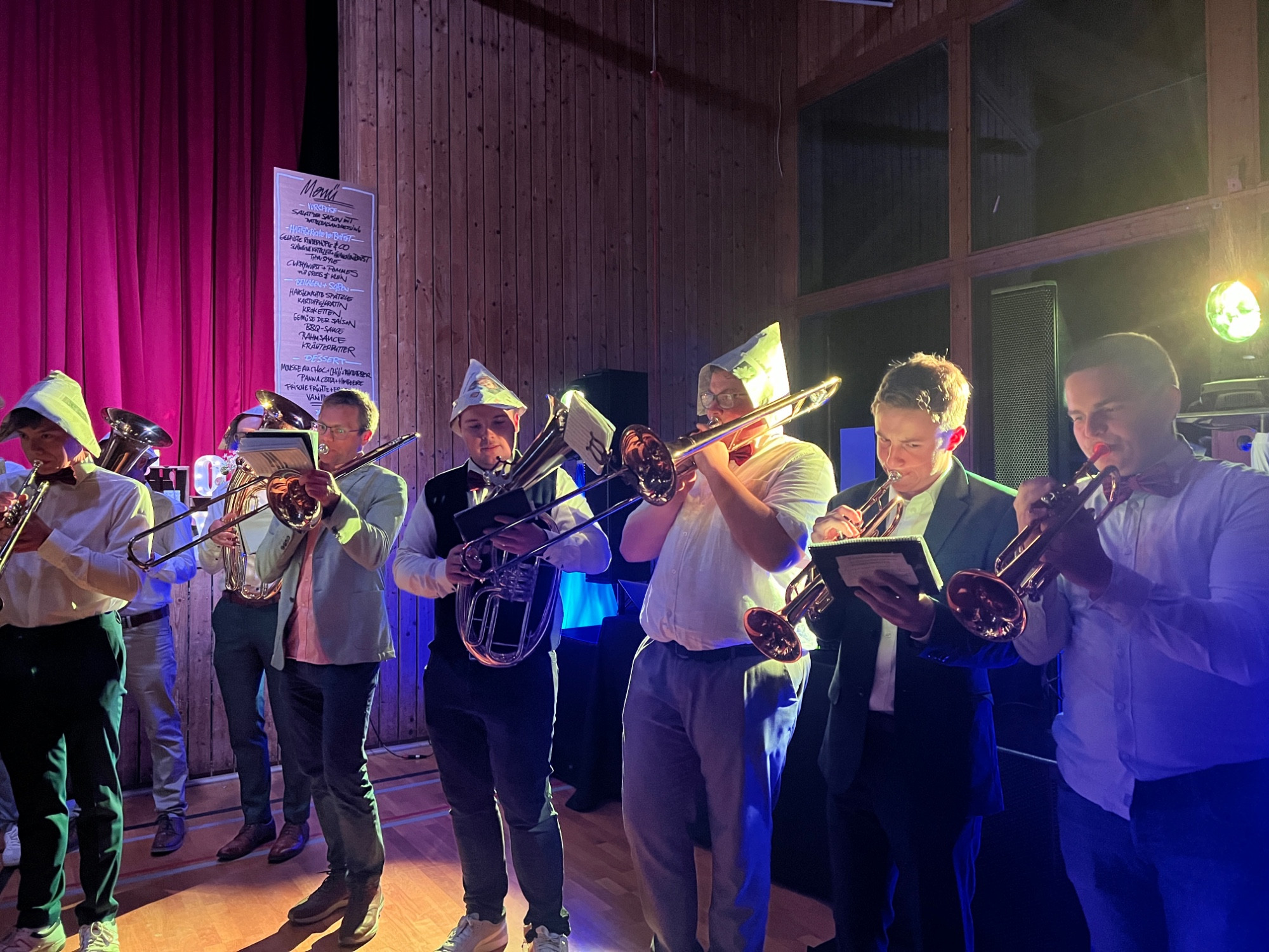 wir bedanken uns nicht nur für die Einladung zu eurem Ständchen und zu eurer Hochzeit, sondern auch für euer Engagement. Durch euren Einsatz, aber vor allem durch eure stets offene und freundliche Art, seid ihr ein unverzichtbarer Teil unseres Musikvereins. Wir freuen uns, dass wir euren besonderen Tag durch die Musik unvergesslich machen durften.